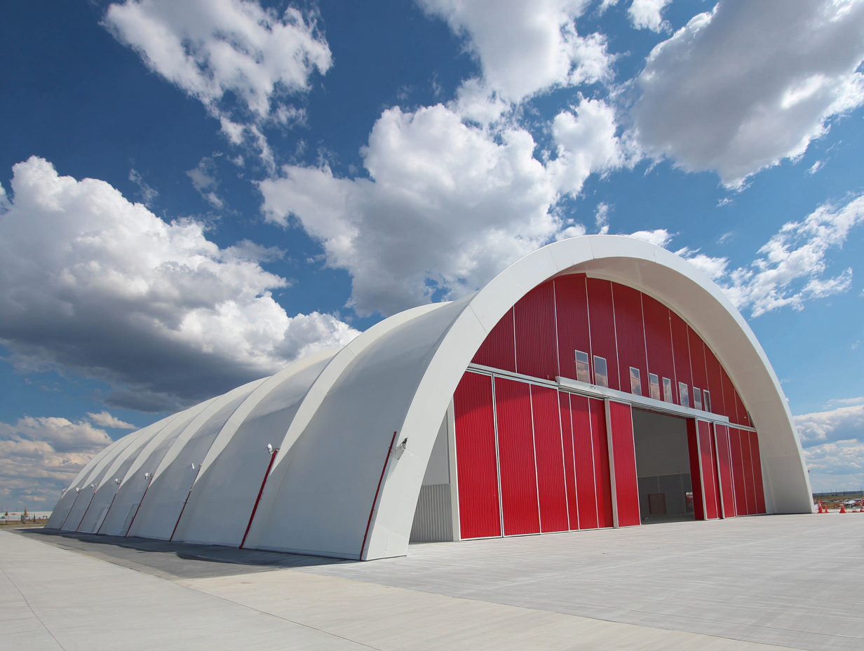 Ангары чаще всего строятся на основе металлического каркаса, который обеспечивает прочность, устойчивость к нагрузкам и быструю сборку. Стальные конструкции изготавливаются в заводских условиях, что гарантирует точность размеров, соблюдение ГОСТов и минимизацию производственного брака. На объект они доставляются уже готовыми к монтажу, что существенно сокращает сроки строительства.